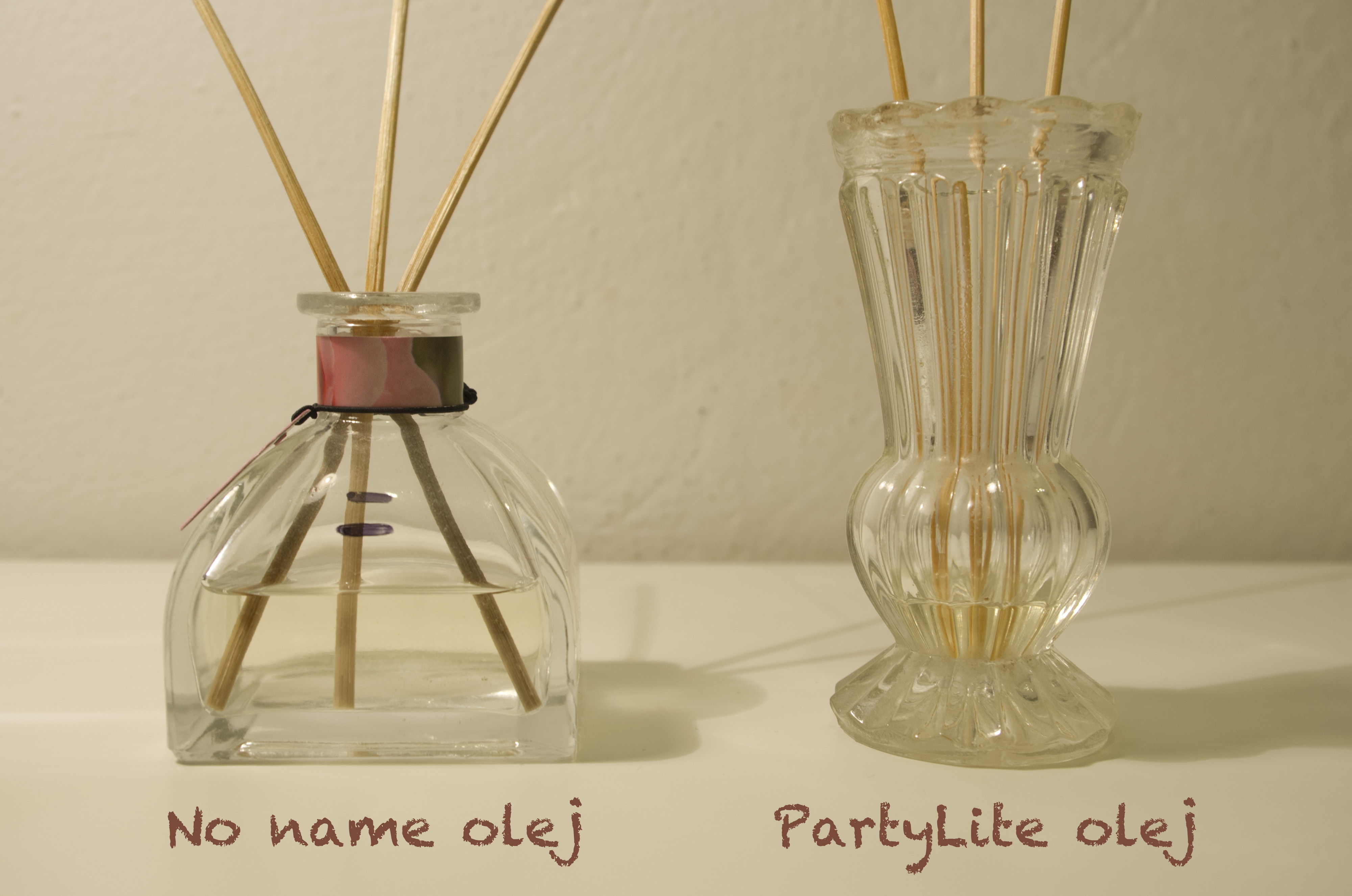 Dnes si dáme jedno zajímavé téma. Pamatujete si, jak jsem psala recenzi na PartyLite aromatický olej? Že ne? Tak mrkněte sem. A pokud ano, tak zrovna s tímto konkrétním olejem budu dnes porovnávat jeden No name (ano, opravdu nemá jméno), který jsem dostala od maminky někdy koncem roku 2013. V sadě se nacházel zašpuntovaný flakonek s olejem a 8 tyčinek, které jsou však poněkud kratší než tyčinky z oleje PartyLite.